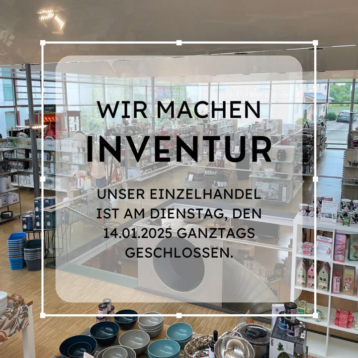 Wir machen Inventur. Desweg ist am Dienstag, den 14.01.2025 unser Ladengeschäft geschlossen. Wir bitten um Ihr Verständnis.