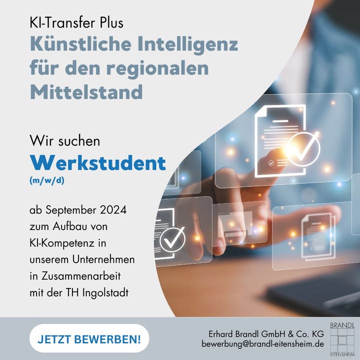 Wir suchen ab September 2024 einen Werkstudenten (m/w/d), der das Projekt „KI Tranfer+“ über 9 Monate hinweg als Project Leader betreut. Du nimmst an Online-Kursen, Workshops und Coachings teil und profitierst durch die direkte Zusammenarbeit mit Experten von deren Know-how. Die flexiblen Arbeitszeiten kannst Du ideal mit Deinem Studium vereinbaren.