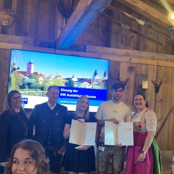 Während der Ausbildung haben Simon und Johanna verschiedene Schulen besucht und dort den Schülern über ihre Ausbildungsberufe berichtet. Gestern fand ein letztes Zusammenkommen und die Ehrung der Ausbildungsscouts in Karlsfeld statt.